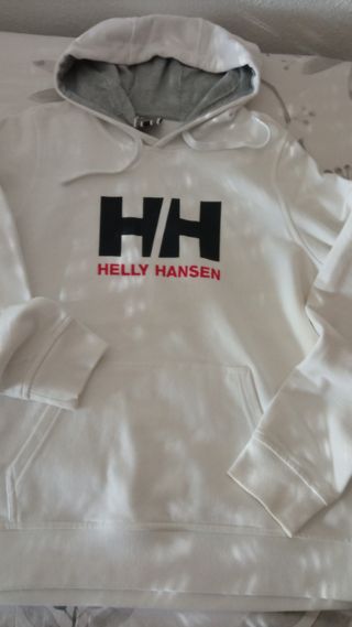 Sudadera con capucha de la marca Helly Hansen. Sólo se ha puesto en dos ocasiones. No hago envíos. - Logo HH en azul oscuro/negro. - Nombre de la marca en rojo.