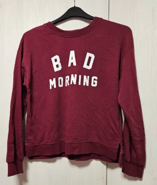 Sudadera con estampado Bad Morning en color blanco. Diseño moderno y cómodo. - Manga larga. - Cuello redondo. - Bajo con aberturas laterales.