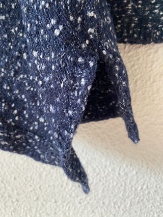 Jersey de punto con un diseño moteado en azul y blanco. La tela tiene una textura interesante y un tacto suave. - Tejido de punto. - Diseño moteado.