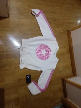 Sudadera Converse blanca con detalles en rosa terciopelo completamente nueva. Comprada en el Corte Inglés - Logo circular de Converse en el pecho. - Cordones de ajuste en la capucha. - Cinta decorativa en color rosa.