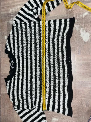 Jersey de punto con diseño de rayas. - Diseño de rayas verticales. - Acabado deshilachado en puños y bajo. Puesto en 2 ocasiones.Medidas en las fotos.