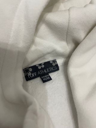 Sudadera con capucha y bolsillo frontal. ATENCIÓN. Se vende porque tiene una pequeña mancha amarilla (ver foto) y no la pongo.