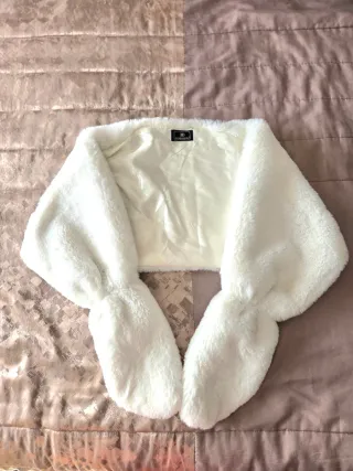 Elegante bolero de tacto suave y cálido, perfecto para complementar cualquier atuendo. - Diseño envolvente y acogedor. - Acabado de pelo sintético. - Forro interior liso.