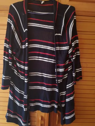 Rebeca de punto con un diseño de rayas verticales y horizontales. Sin botones - Diseño de rayas en azul marino, blanco y rojo. - Tejido ligero y transpirable.