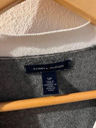 Rebeca de punto de la marca Tommy Hilfiger. - Diseño de manga larga. - Cuello en V con ribete blanco. - Cierre de botón. - Dos bolsillos delanteros. - Puños y bajo de canalé.