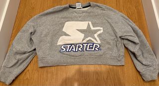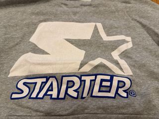 Sudadera de la marca Starter en color gris. Un diseño clásico y cómodo. - Logo grande de Starter en blanco. - Nombre de la marca STARTER en azul en la parte delantera.