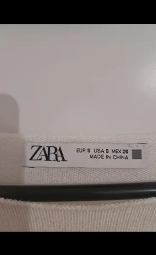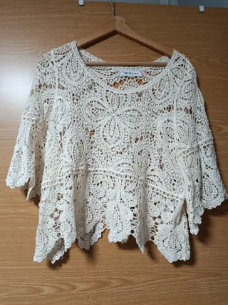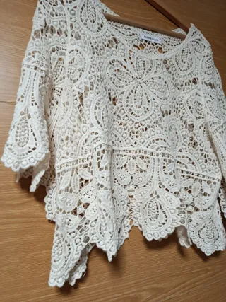 Elegante chaleco de Zara con un delicado diseño de encaje. - Manga larga. - Cuello redondo. - Detalle de volantes en el bajo.
