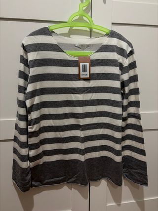 Jersey de punto con un diseño de rayas clásico en azul y blanco. Su tejido ligero lo hace ideal para entretiempo - Diseño de rayas horizontales. - Cuello redondo. - Manga larga.