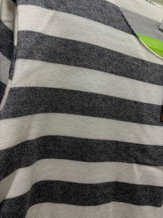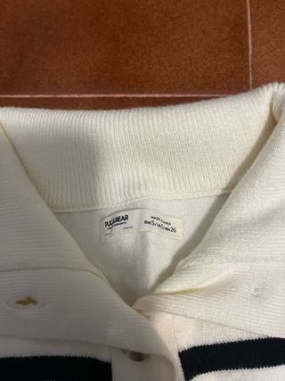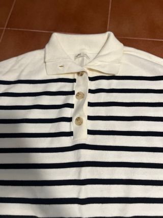 Jersey de punto fino con rayas marineras. - Diseño de rayas horizontales en blanco y negro. - Detalle de botones dorados en el hombro. - Manga larga. puede dar a talla m oversized