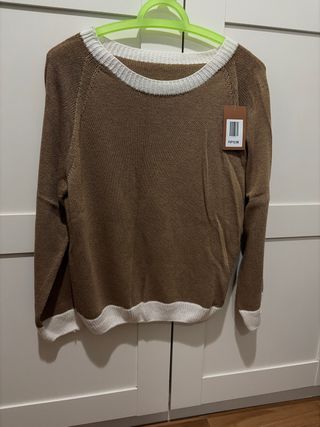 Jersey de punto con cuello redondo y manga larga. - Diseño con contraste de color en cuello y bajo. - Tejido suave y cómodo.