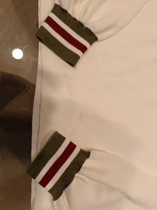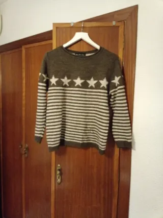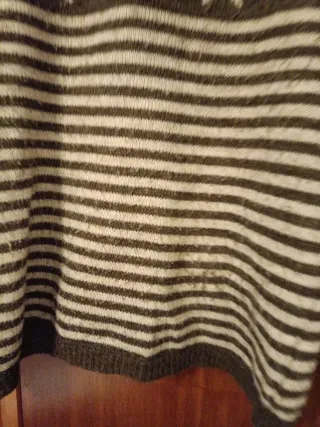 Jersey de punto con un diseño de rayas horizontales en tres colores. Lo vendo porque me queda pequeño nunca me lo he puesto solo probado en casa. - Diseño de tres bloques de color. - Cuello barco. - Manga larga.