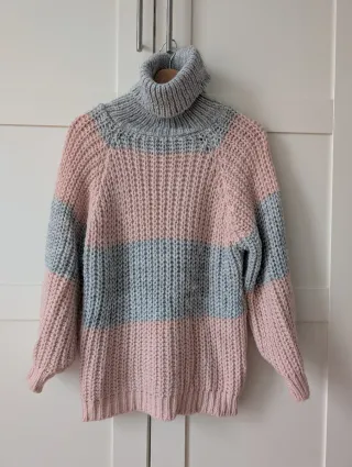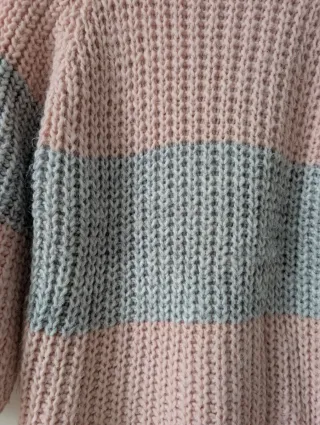 Jersey cuello vuelto rayas gris y rosa