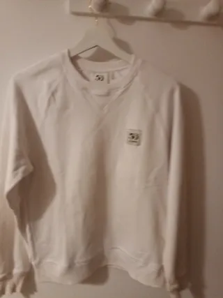 Sudadera de Zara en color blanco con un diseño moderno. - Detalle de logo 50 en el pecho. - Cuello redondo. - Mangas ranglán.