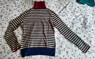 Jersey de manga larga Springfield talla M nuevo von etiquetas, con un diseño de rayas multicolor. - Cuello redondo. - Tejido suave y cómodo.