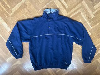 Sudadera de estilo deportivo con cuello alto y cierre de botones. - Diseño con detalles de líneas blancas. - Puños y bajo elásticos.