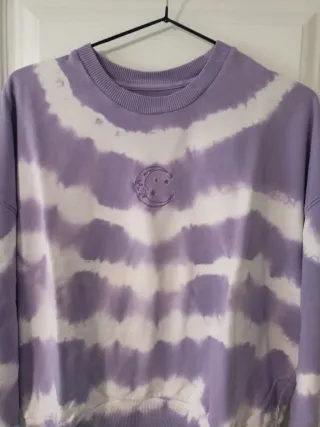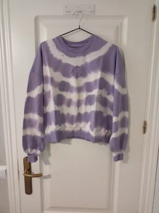 Sudadera de Pull&Bear con un llamativo diseño tie-dye. - Estampado tie-dye en tonos morados y blancos. - Cuello redondo. - Manga larga. - Detalle bordado de luna y estrellas en el pecho.