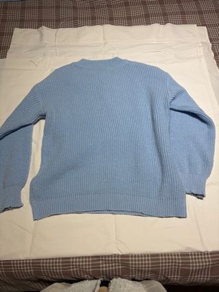 Jersey de punto de manga larga en color azul. Presenta un diseño de canalé vertical y detalles de hilo blanco en los puños y el bajo. 100% acrilico. Medidas: de axila a axila 64 cm y 53 cm de largo. Esta en buen estado. Se entrega en Puerta del Sur Alcorcon. Envios por wallapop. - Tejido de punto acanalado. - Diseño de cuello redondo. - Puños y bajo con detalle de hilo.