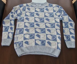 Jersey de punto con un original diseño de corazones en un patrón de cuadros. Es una prenda cómoda y llamativa. - Diseño de corazones. - Cuello redondo. - Manga larga. Muy suave. Es nuevo sin etiqueta. Aunque pone talla xl/xxl. Viene más para talla M/L. Para XL va estar justo.