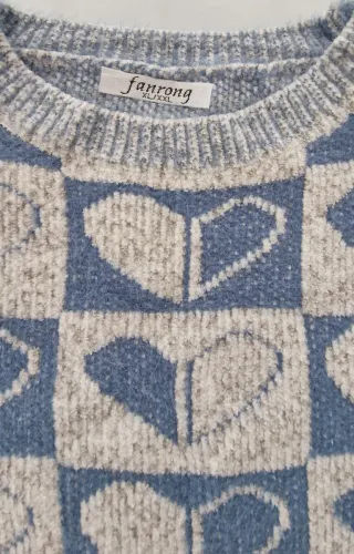 Jersey Corazones Beige y Azul Talla Única
