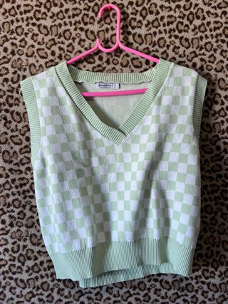 Chaleco cuadros verde y blanco