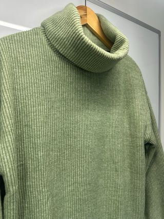 Jersey verde canalé cuello alto oversize