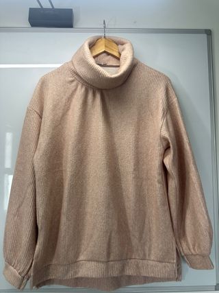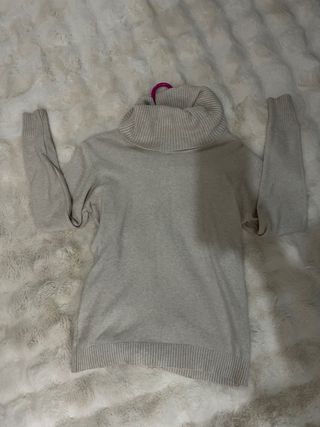 Jersey de punto grueso con cuello alto. - Diseño de punto acanalado. - Manga larga. - Corte holgado Aunque es talla S, queda amplio y cortito.