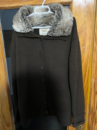 Chaqueta de punto de la marca Jessica en color marrón. Presenta un elegante cuello de pelo sintético. - Cierre de botones. - Puños y bajo de canalé. - Bolsillos frontales.