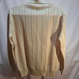 Suéter de lana H&M en color beige, talla L. Es de cuello alto y tejido de punto. - Diseño de punto trenzado. - Tiene un largo que permite usarlo como vestido. - Perfecto para el otoño-invierno.