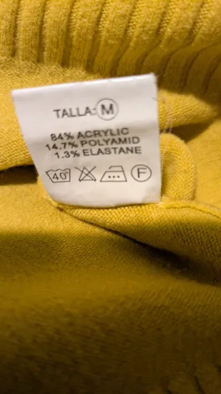 Jersey de punto mostaza con cuello alto | Estilo Cozy & Chic de la firma Pull & Bear. Medidas de sisa a sisa 44 cm Largo 63 cm Punto con relieve (tipo nido de abeja o gofre) que le da cuerpo y un aspecto de alta calidad. #OldMoney #QuietLuxury #EstiloParisino #CasualChic #ModaOtoño #StreetStyle #JerseyMostaza #CuelloAlto #PuntoGrueso #Turtleneck #JerseyPunto #Mostaza #JerseyAbrigado #LookOficina #EstiloElegante #PrendaBasica #MustHave