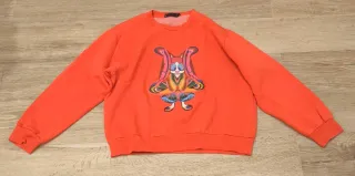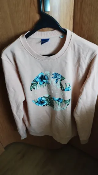 Sudadera de manga larga con un llamativo diseño de labios. - Estampado de labios en color rosa y naranja. - Cuello redondo. - Puños y bajo elásticos. Su precio era de 56,95, es un artículo nuevo,su etiqueta