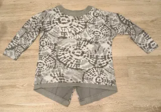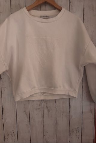Sudadera de Zara con un diseño moderno y cómodo. - Talla L oversize, puede valer para una XL. - Acabado desgastado en tono grisáceo. - Cuello redondo, puños y bajo elásticos. Muy calentita, poco uso, perfecto estado.