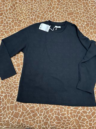 Jersey de Zara. - Diseño de corte recto. - Cuello redondo. - Manga larga. - Dobladillo asimétrico.