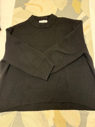Jersey de punto negro. - Cuello redondo. - Manga larga. - Queda oversize.