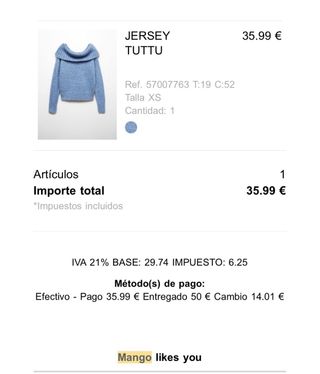 Jersey Mango Azul Talla XS