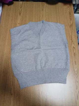 Chaleco de punto con cuello en V. Talla S/M - Tejido suave y cómodo. - Diseño sin mangas. - Bajo elástico acanalado.