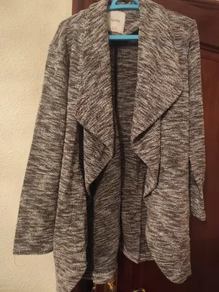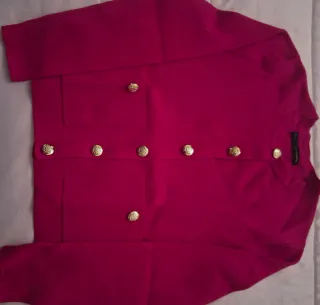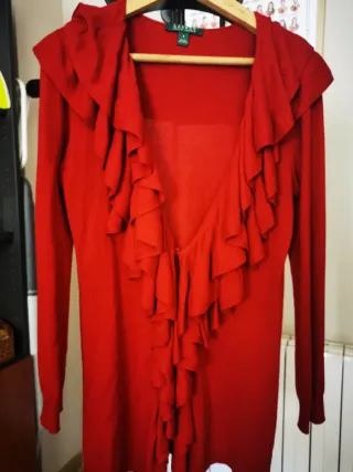 Elegante rebeca de punto con un diseño de volantes. Corresponde a una talla M - Manga larga. - Cuello con volantes. - Cierre de botón.