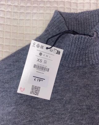 Jersey de canalé fino de Zara para mujer. - Cuello alto. - Manga larga. - Tejido elástico.