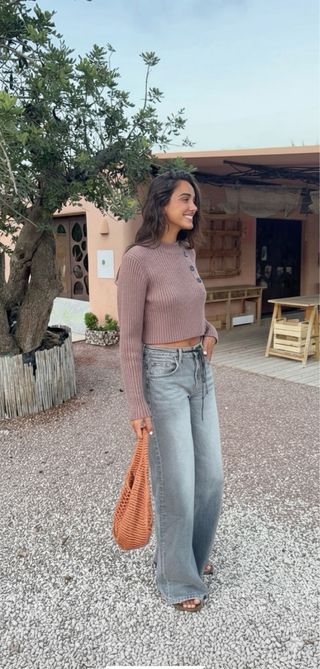Jersey de punto fino con botones. - Diseño cropped. - Manga larga. - Cuello redondo.