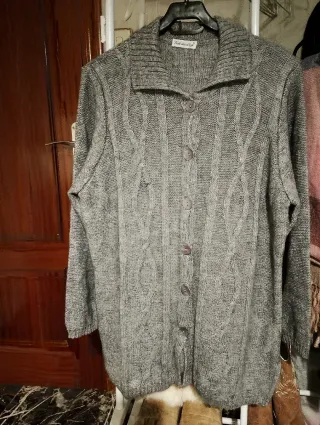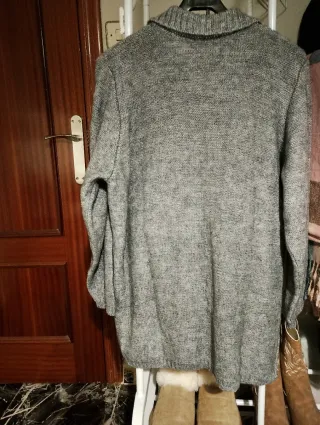 Jersey de punto trenzado en color gris con un detalle de solapa en contraste negro. - Diseño de punto trenzado. - Cuello con solapa en color negro. Jersey de color gris y solapa borde negro en el cuello tipo pico , jersey que abriga para este invierno, es muy cómodo y combinable. Nuevo.