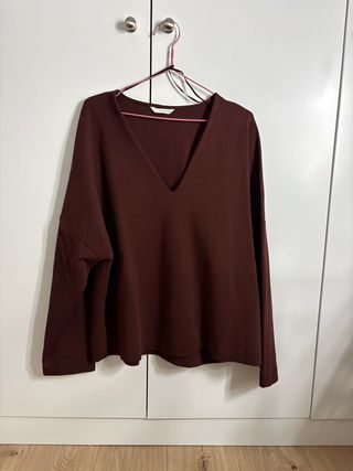 Sudadera Zara granate cuello pico