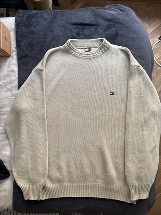Sudadera de punto de la marca Tommy Hilfiger en color beige. - Cuello redondo. - Logo de la marca en el pecho.