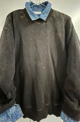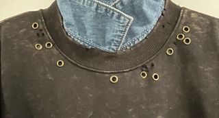 Sudadera de algodón con un diseño moderno y detalles de tachas. - Color óxido, negro efecto desgastado con pequeños rotos y tachas bronce. - Cuello y puños elásticos. - Tachas metálicas por la parte delantera, alrededor del cuello. *Hago envíos por Seur shop2shop