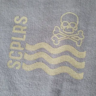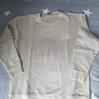 Sudadera Scalpers color beige. Presenta un diseño con un pequeño logo en la parte delantera y leyenda a la espalda. Sin usar - Cuello redondo. - Manga larga. - Puños y bajo elásticos.