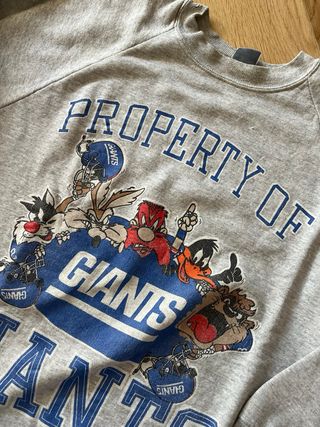 Sudadera vintage con diseño de Looney Tunes y el equipo Giants. - Estampado frontal con personajes. - Cuello redondo. - Mangas largas.