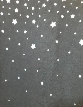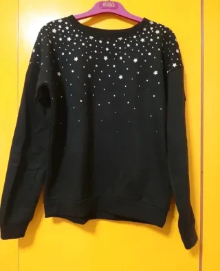 Sudadera negra con estrellas plateadas. Talla S. Medidas hombros 53 y largo 57 - Manga larga. - Cuello redondo. - Estrellas plateadas.