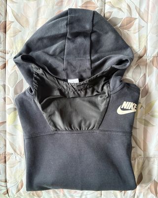 Sudadera con capucha de la marca Nike en color negro. Presenta un diseño moderno con detalles en la zona del cuello y puños. - Capucha ajustable. - Puños y bajo elásticos. - Logo de Nike en el pecho.
