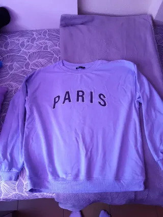 Sudadera con estampado PARIS en la parte delantera. Es una prenda cómoda y versátil. - Manga larga. - Cuello redondo. - Puños y bajo elásticos.