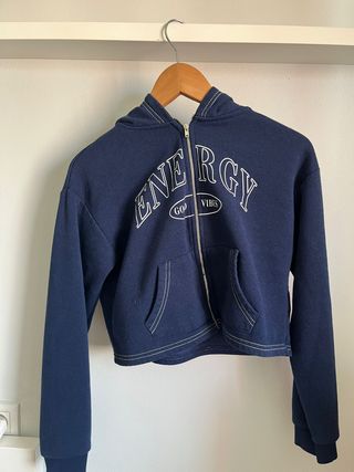 Preciosa sudadera rosa de Zara. Es corta y tiene un corte ajustado. - Cremallera frontal - Capucha - Mangas largas
