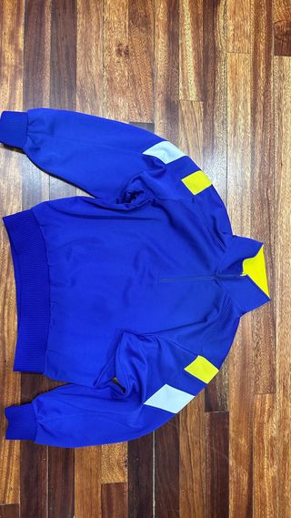 Sudadera azul y amarilla con cremallera