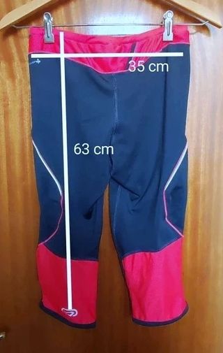 Mallas deportivas corte pirata (3/4) marca Kalenji (Decathlon). Talla L (Mujer). Gris oscuro y detalles fucsia. 📏 MEDIDAS: Cintura 35cm (con elástico/cordón), Largo 63cm. (Ver foto 2). ✨ ESTADO: Muy bueno. Tejido transpirable Equarea sin "bolitas" en la entrepierna. Tienen bolsillo trasero con cremallera y bandas reflectantes. Perfectas para correr o andar. 🦄 HAGO LOTES: ¡Ideal para combinar! Tengo sudaderas y otras mallas deportivas de la Talla L en mi perfil. Si te llevas varias cosas te hago descuento y ahorras en envío. 📦 Envío rápido. #mallas #leggings #kalenji #decathlon #deporte #mujer #lote #gym #oferta